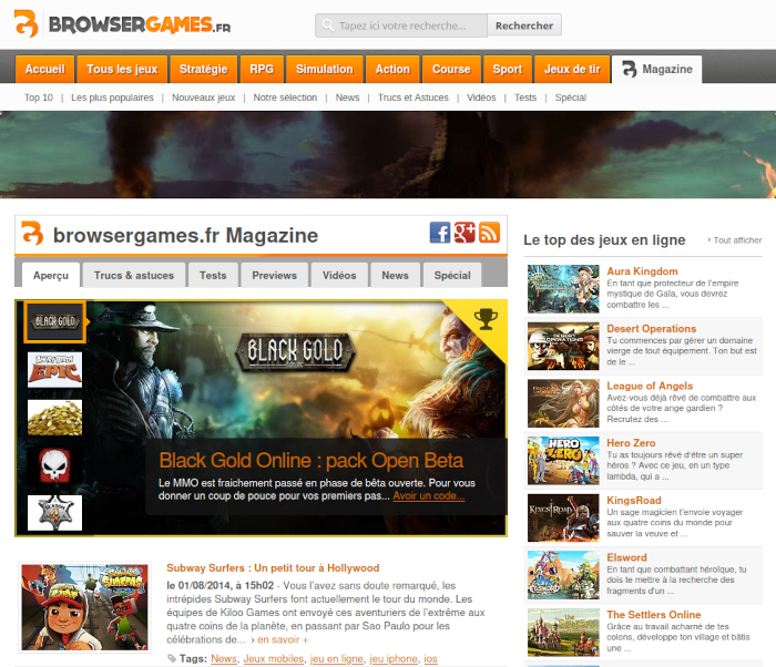 En sommes, on pourrait qualifier Browser games de jeuxvideo.com des jeux en ligne. J’entends par là, sa quantité d’informations présente sur le site et le travail de rédaction mené par toute l’équipe.